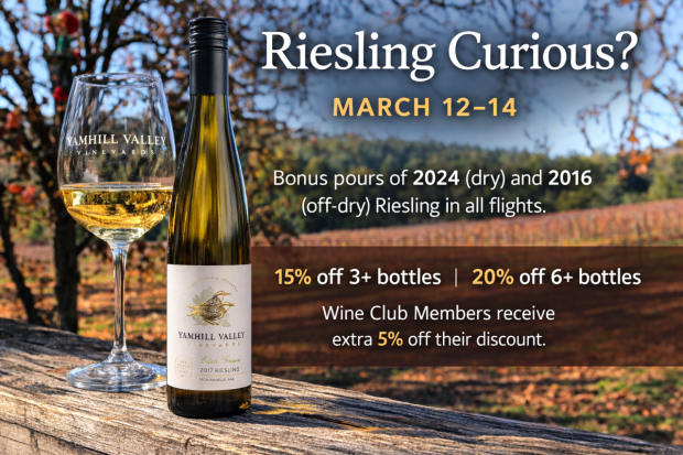 Are you a little Riesling curious? Join us as we celebrate this beautifully versatile grape with a special tasting opportunity in the Tasting Room. All flights will include two bonus pours—our 2024 Riesling (dry) and 2016 Riesling (off-dry)—served side by side so you can explore how style and time shape this expressive varietal.